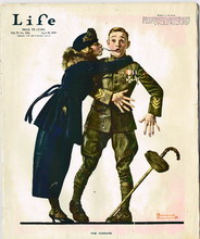 ’Tain’t you " est la première couverture que Rockwell fournit au magazine Life. Elle date de Mai 1917 et n’est pas facile à dénicher. Je ne l’ai vue proposée qu’une fois en 6 ans et j’ai eu la chance de la mettre dans ma musette. Ce magazine est complet, et en excellent état pour presque un siècle. L’entrée en guerre des Etats-Unis se produisit juste après cette couverture, et les illustrations suivantes de Rockwell pour Life montraient des soldats et leurs familles. Life, le magazine d’humour, soutenait ainsi les jeunes recrues.