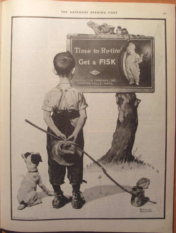La pub du 1917 01 13 Fisk Red Tops est la première de Rockwell parue dans un Saturday Evening Post