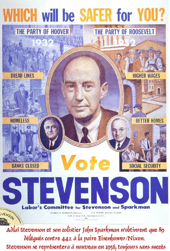 Stevenson/Sparkman Les deux antagonistes se retrouveront d'ailleurs face à face en 1956, et le résultat sera identique: Eisenhower sera réélu avec une plus forte marge encore: